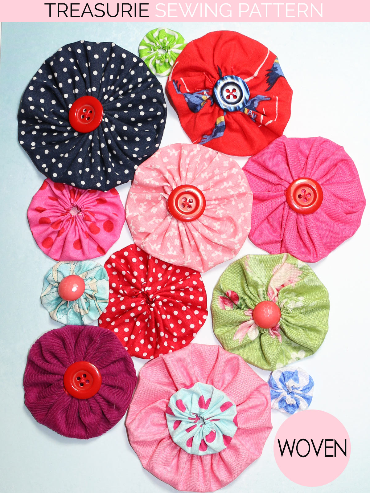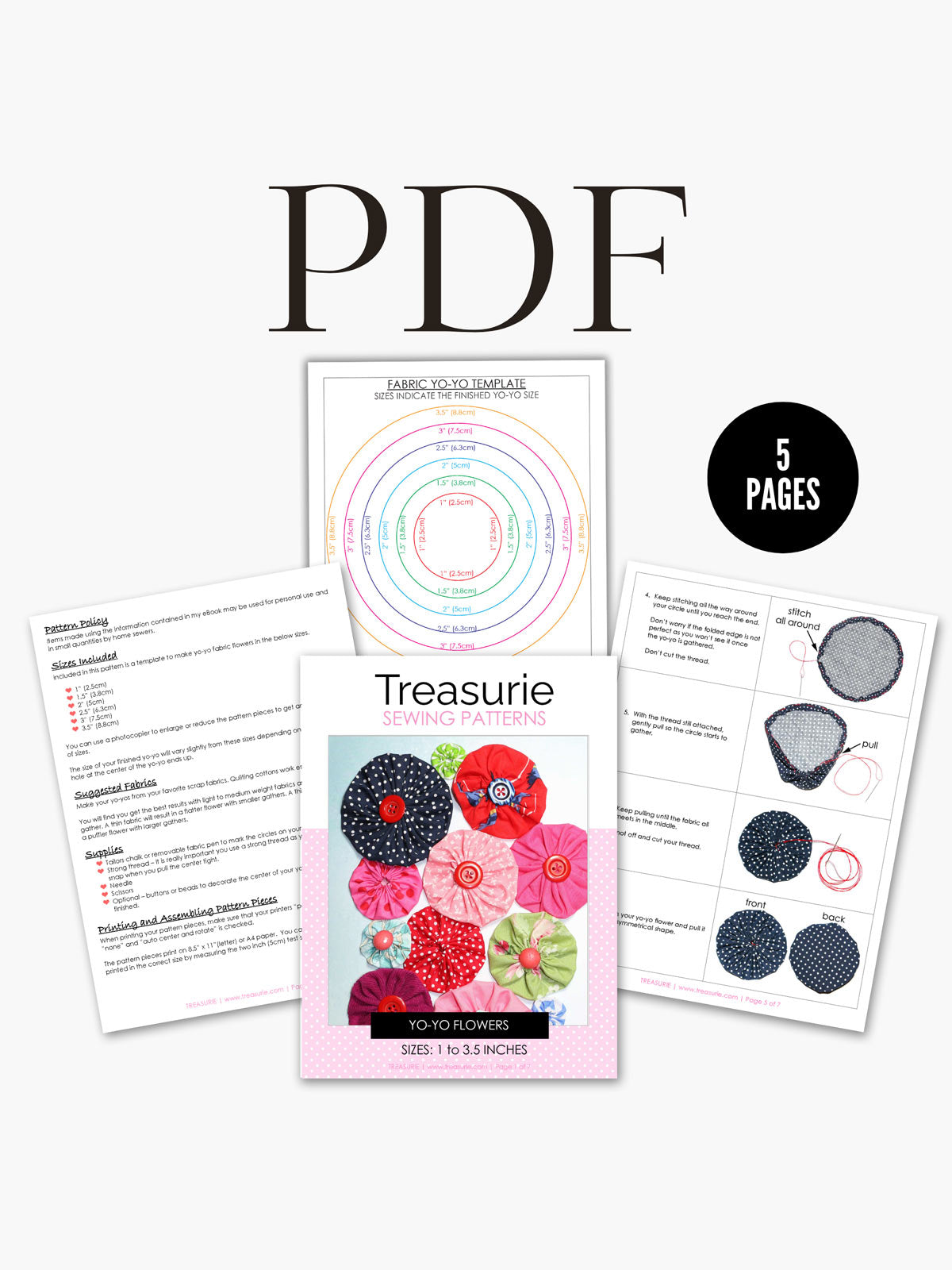If you are looking for decorating ideas for clothing and sewing projects, then fabric flower yo-yos are fast and easy to make. Best of all, you can use up some of your favorite fabrics from your scrap pile! This tutorial includes a free printable template to make different-sized flowers from 1 inch to 3.5 inches - no more measuring or maths!