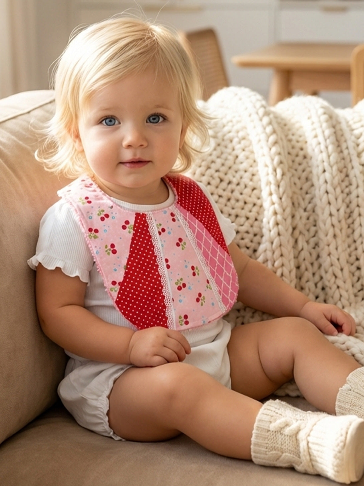 Sew practical and adorable accessories with this patchwork baby bib sewing pattern. Designed for using your fabric scraps, these baby bibs combine patchwork style with everyday function, helping keep babies dry while looking cute and handmade.