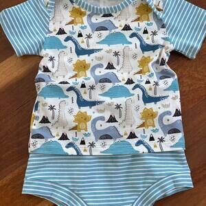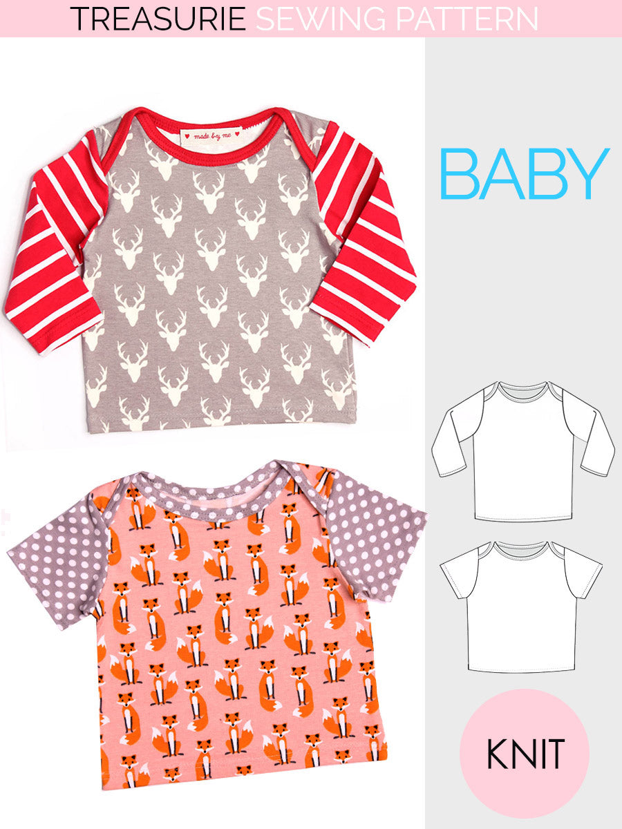 Fabric Suggestions: Light to medium-weight stretch knit fabrics such as jersey knit. Rib knit fabric is required for the neck binding. These fabrics create soft, flexible, and comfortable baby tops.