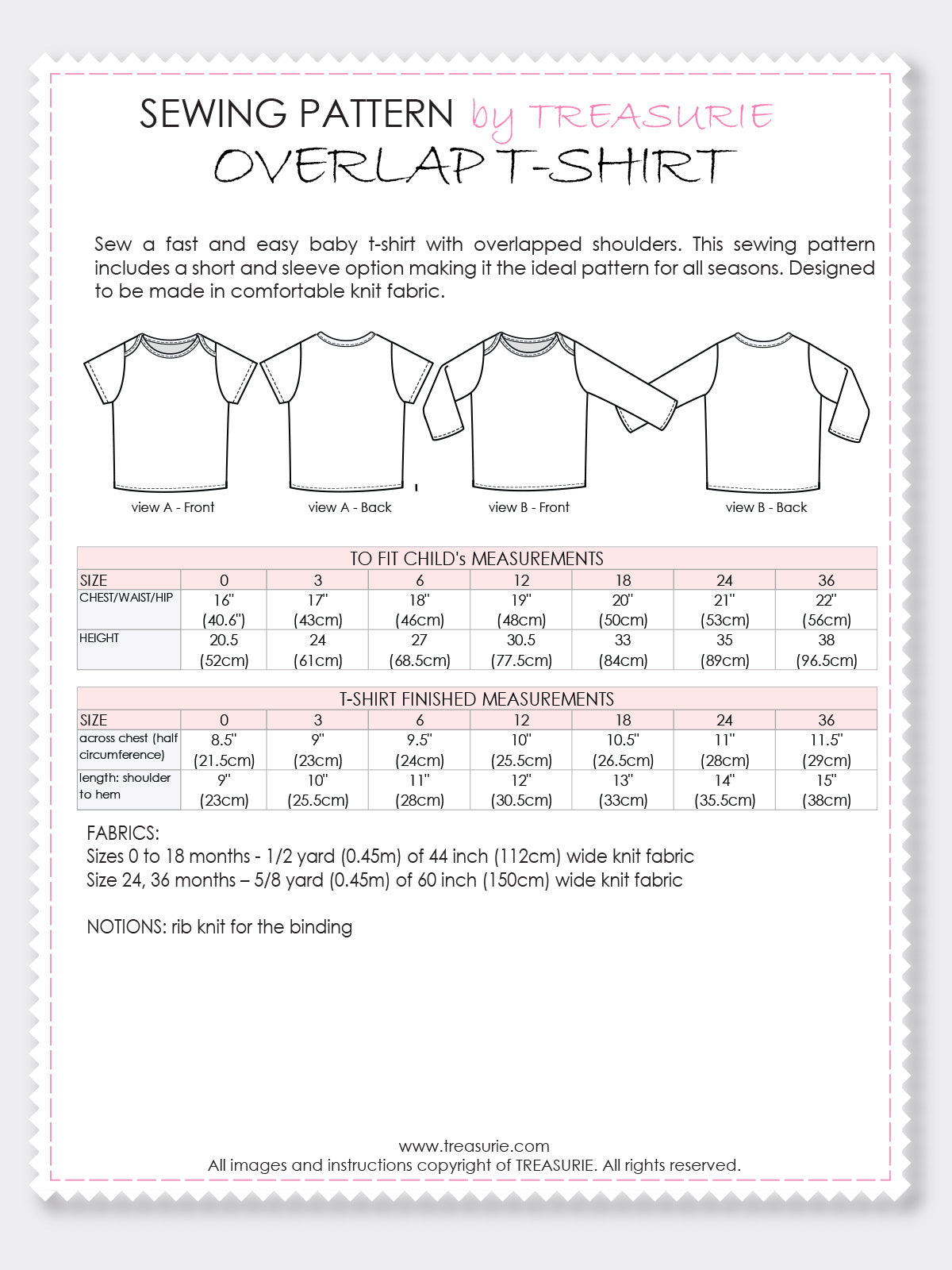 Included in all Treasurie sewing patterns.