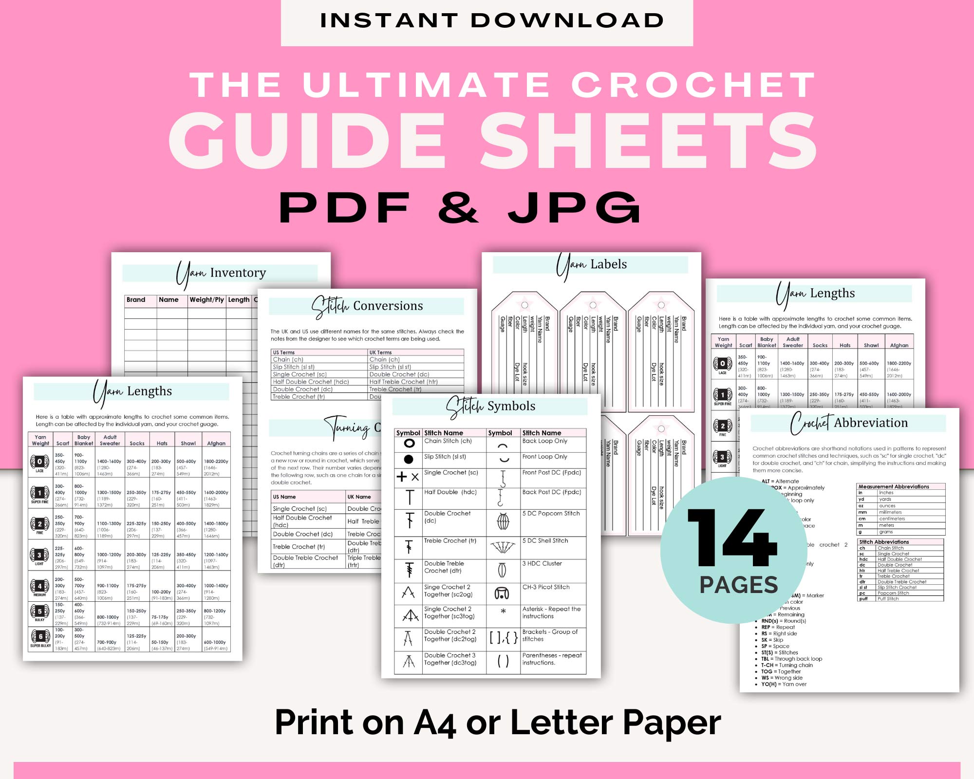 ⭐Ultimate Crochet Guide Sheets - 14 Pages