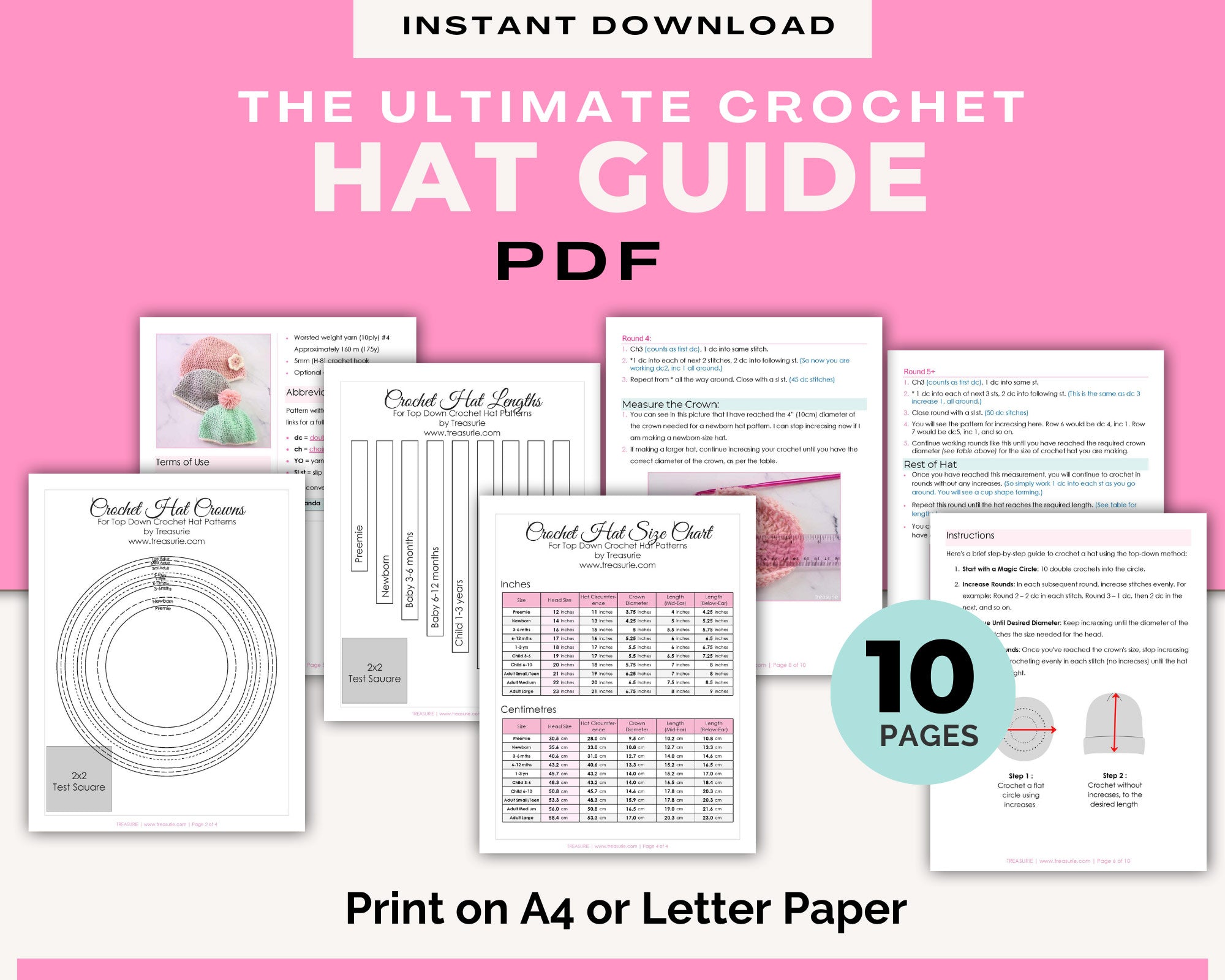 ⭐Crochet Hat Templates and Charts - 10 Pages