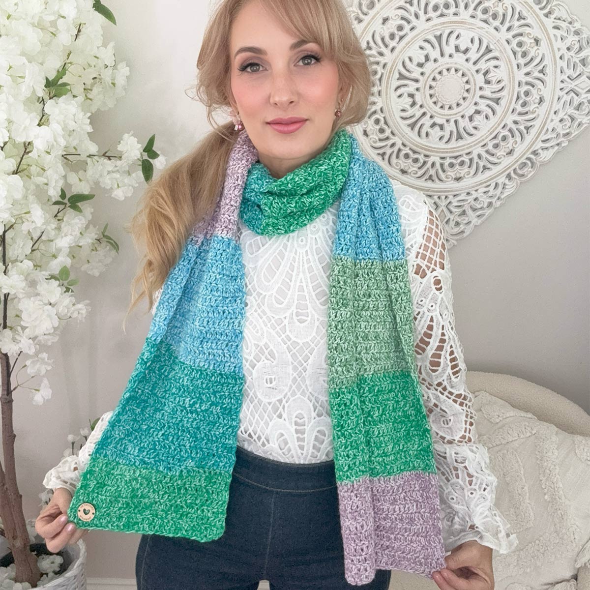This easy pattern uses double crochet to make a warm scarf. The pattern includes clear step-by-step instructions and photos to guide you along.