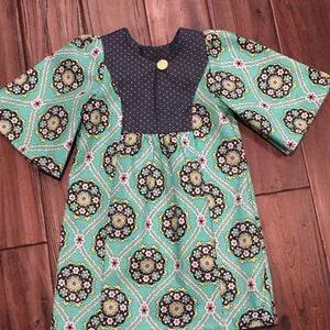 The Florence Dress a relaxed vintage style dress and top sewing pattern. It has two sleeve lengths (short or elbow length) and comes in a dress or top length. The top looks cute with jeans or leggings.