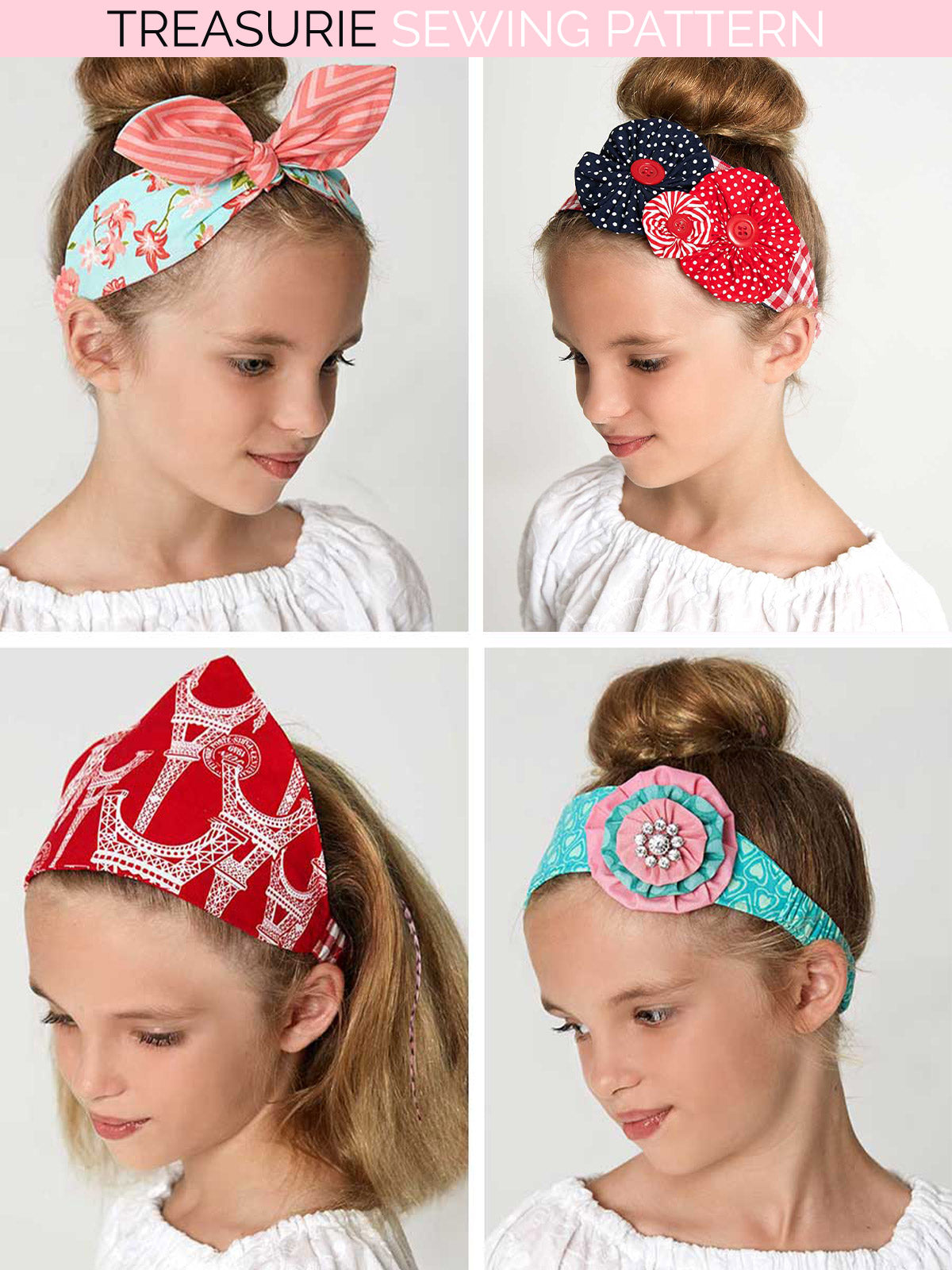 This pattern is amazing value as it contains 3 headband patterns. Make a stylish knotted retro headband, a scarf headband or a simple reversible headband which is perfect for adding trims and flowers to. The headbands only use a fat quarter of fabric and are perfect for using up some of your favorite scrap fabrics. This headband pattern is easy and fun to make.