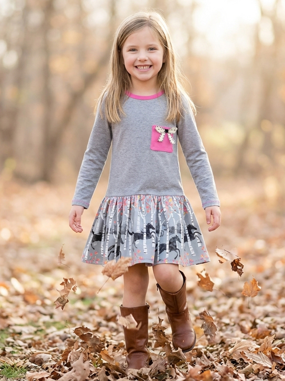 Use the ANTHEA dress pattern to sew a comfortable and flattering girls dress with a drop-waist. It is designed to be made in a soft stretch fabric with a regular sewing machine. Best of all this dress sewing pattern includes options for a short or long sleeve, making it the perfect pattern for all seasons.