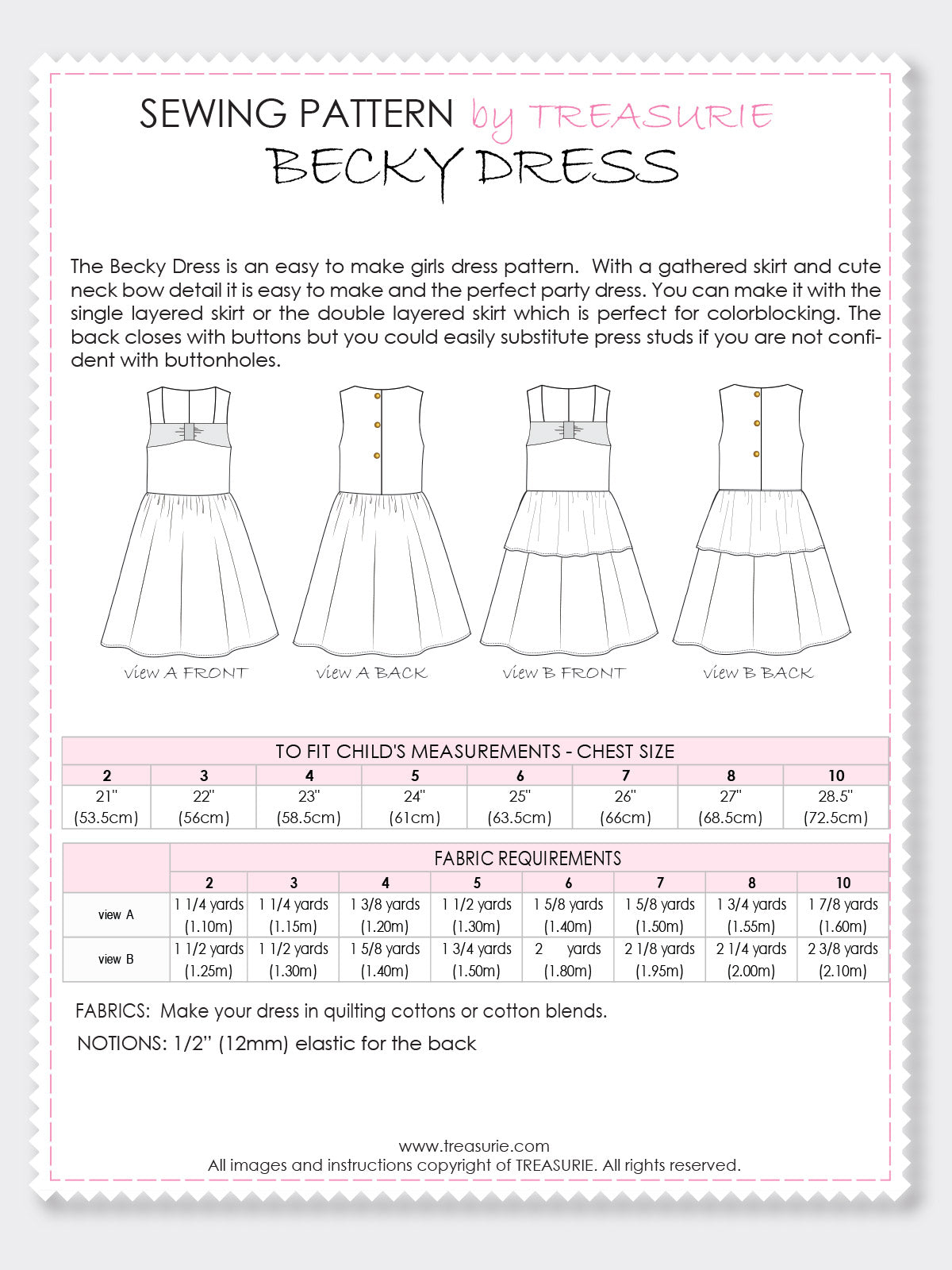SIZE RANGE: This sewing pattern is multi-sized and comes in girls sizes 2 to 10