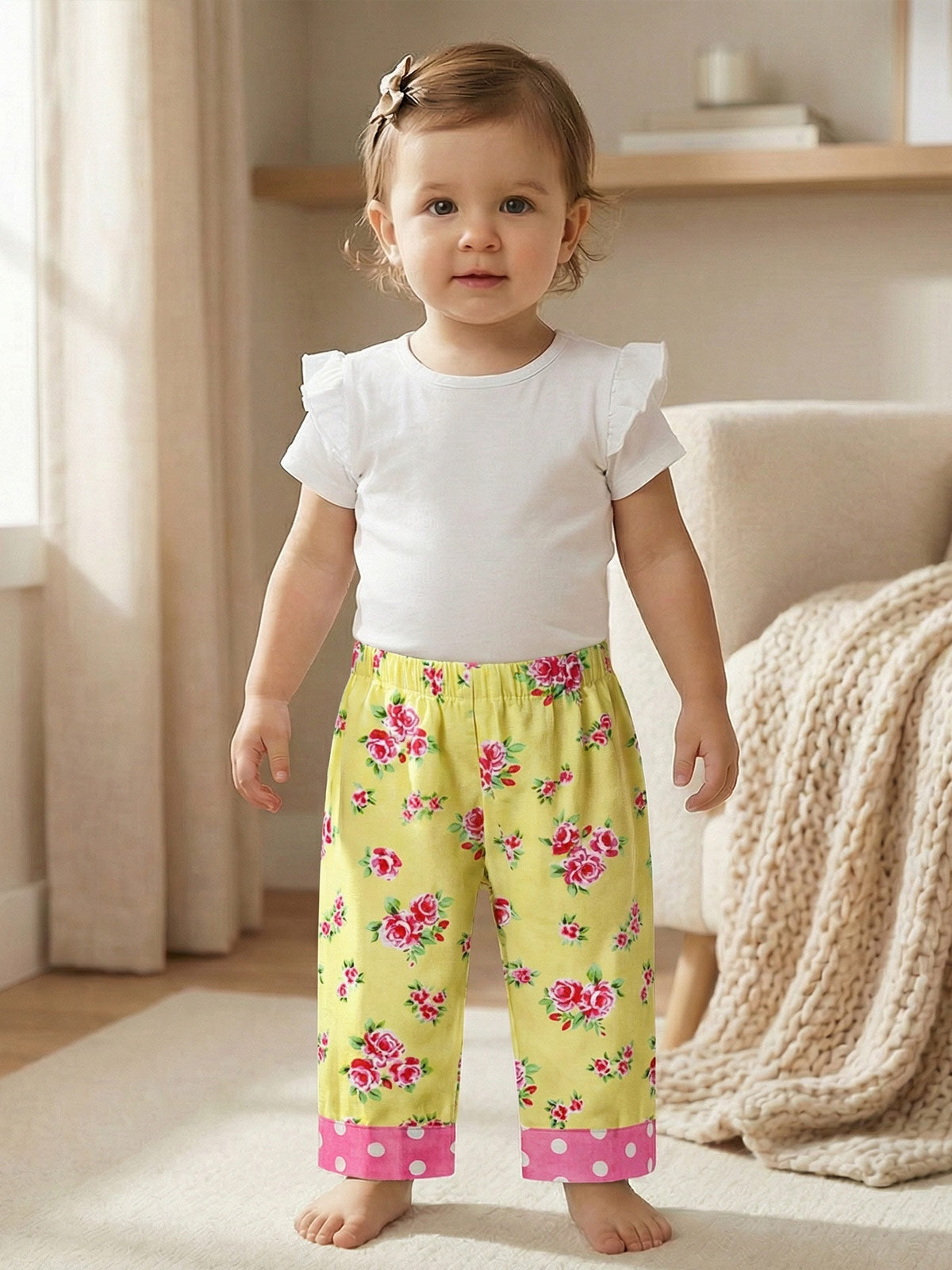 These super comfortable pants will keep your baby warm while looking stylish. They are a fast and easy make for beginner sewers. They come with a contrast cuff and pocket option so you can mix and match details to create something unique. These pants are suitable for both boys and girls. Beginner-friendly – no zippers or buttons required