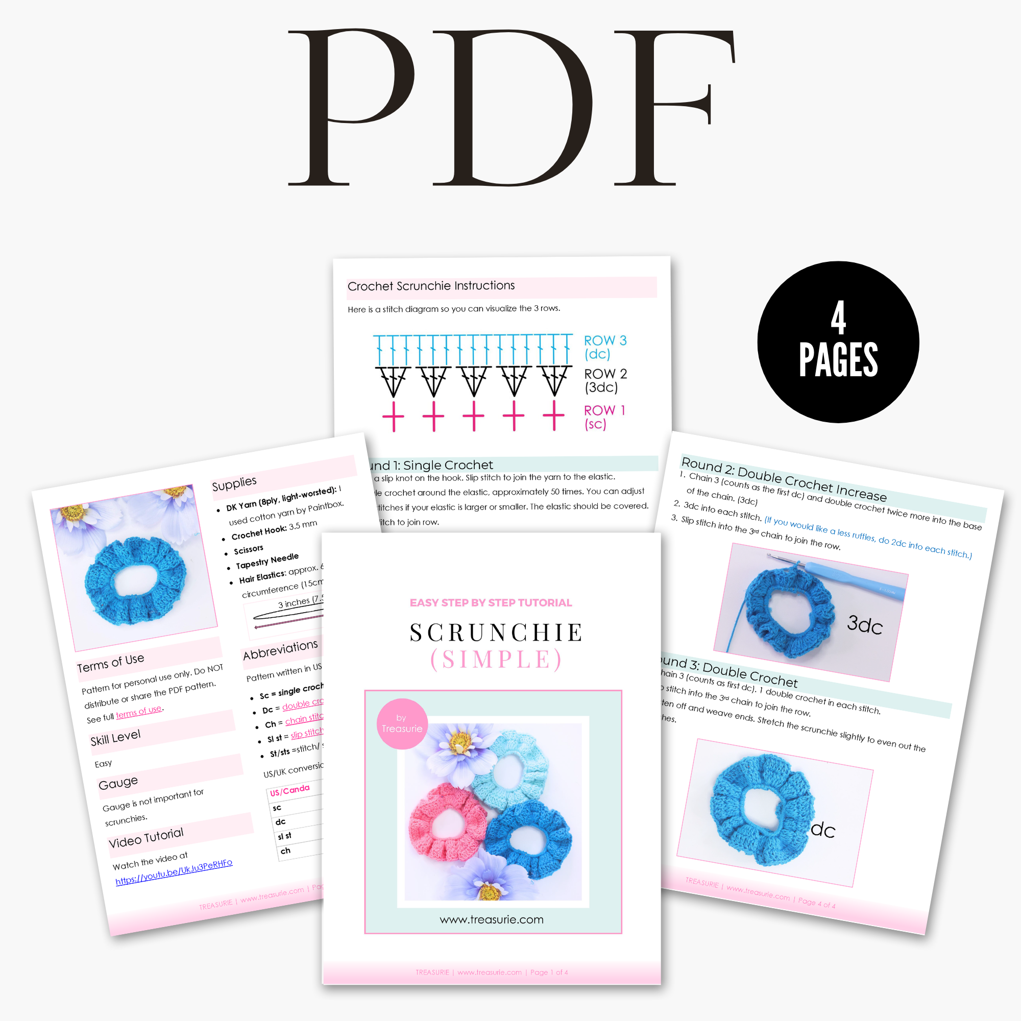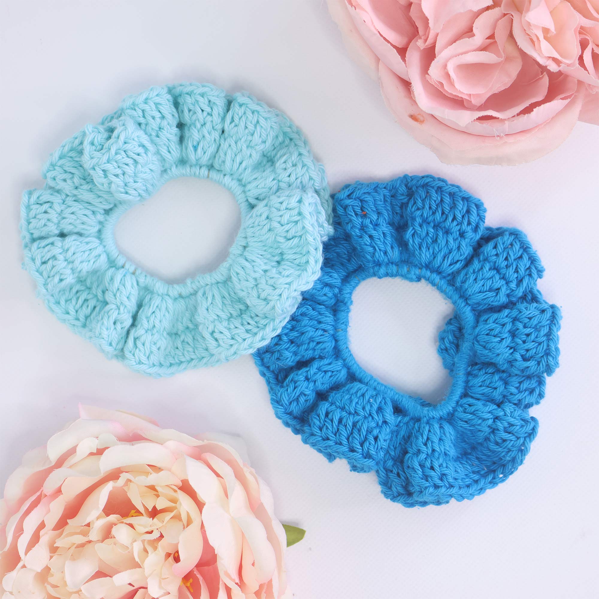 Make your own beautiful and functional crochet scrunchies with this easy-to-follow digital pattern! Perfect for beginners, this design uses just single crochet (SC) and double crochet (DC) stitches — simple, relaxing, and great for quick projects or gifts. Perfect for using up scrap yarn.