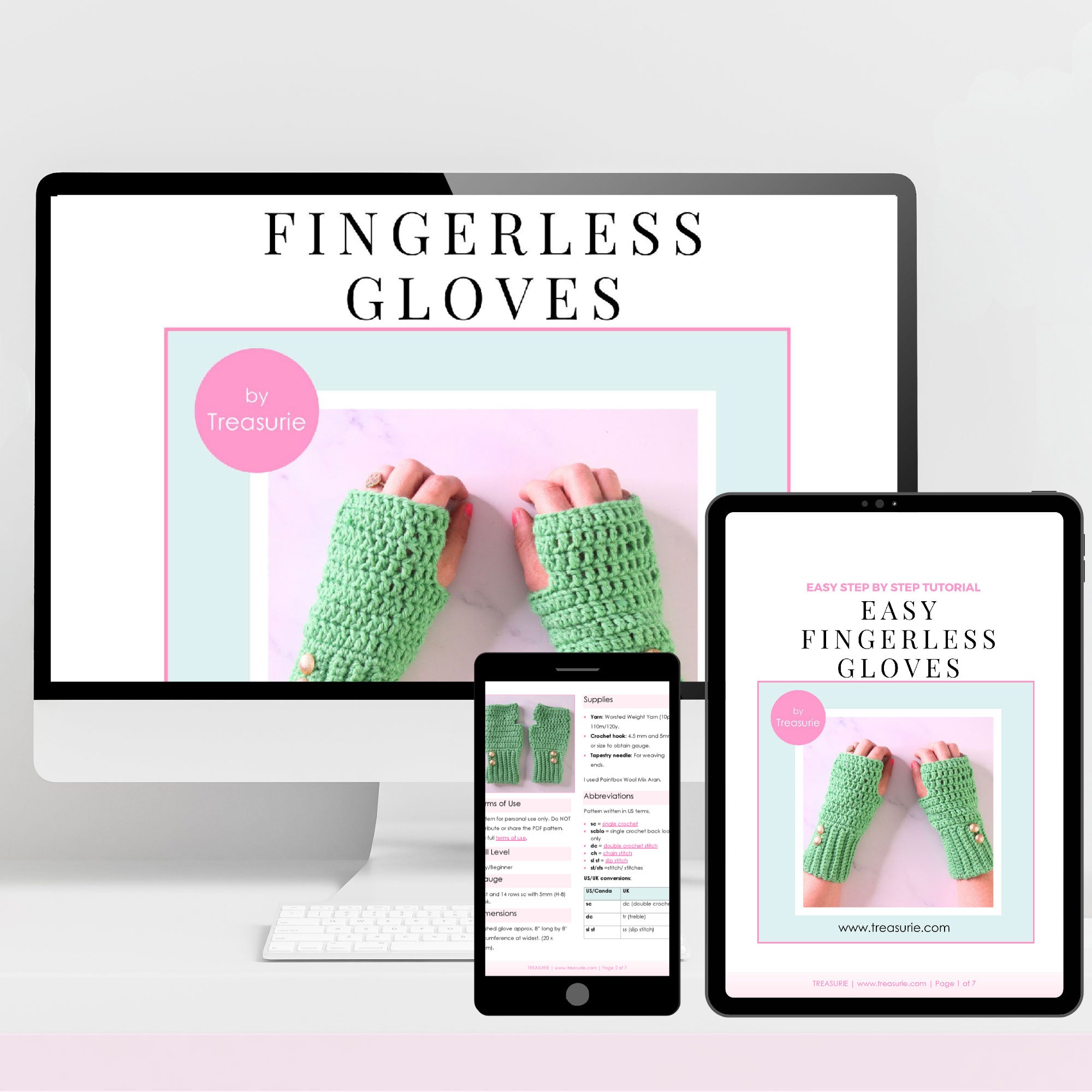 Stay cozy and stylish with these easy-to-crochet fingerless gloves — perfect for keeping your hands warm while still letting you text, type, or craft! This beginner-friendly crochet pattern from Treasurie is quick, satisfying, and works beautifully in almost any worsted yarn.