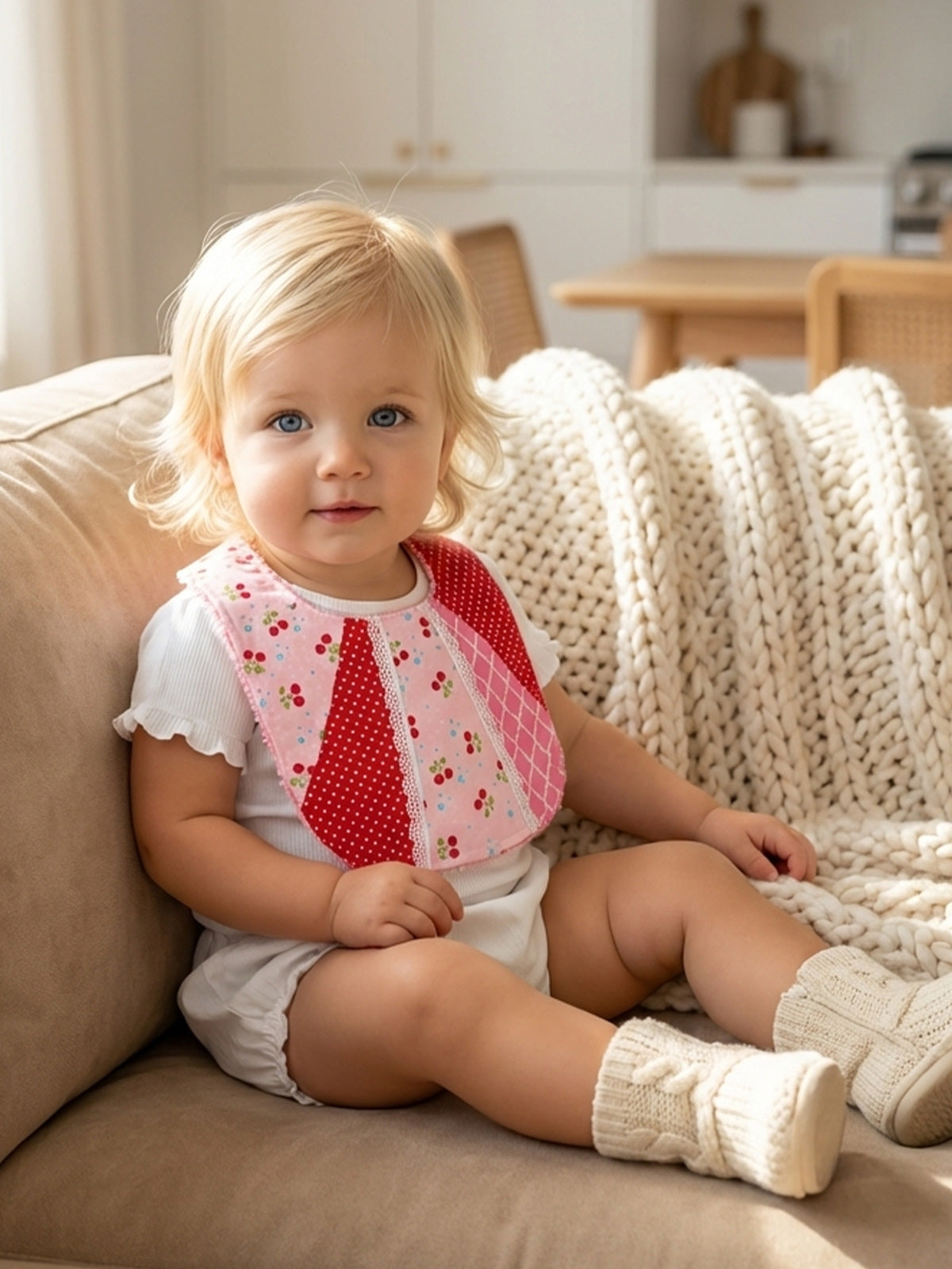 FABRIC SUGGESTIONS: This pattern is suitable for cotton and cotton blends. Quilting fabrics work especially well. The bib is lined with toweling for added absorbency.
