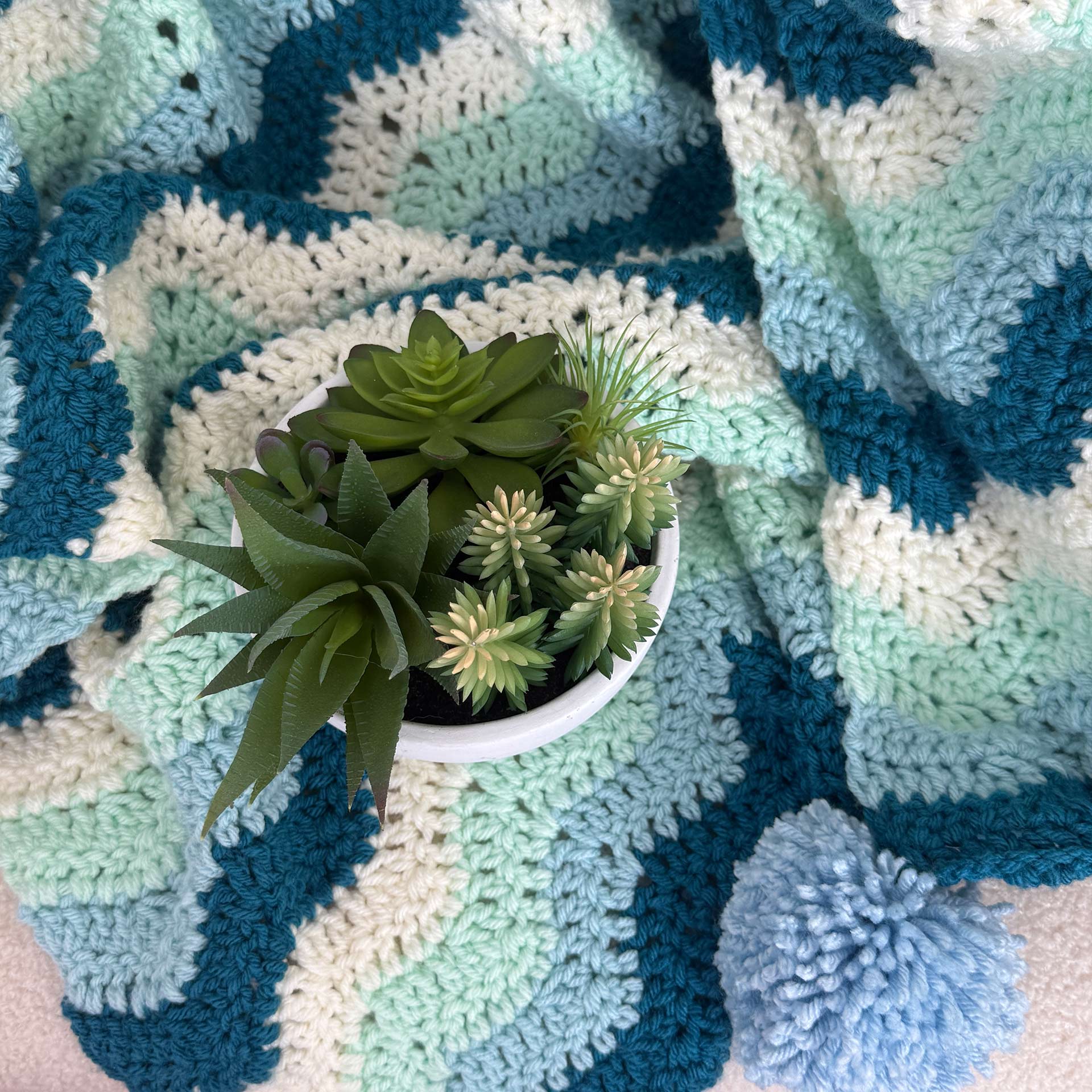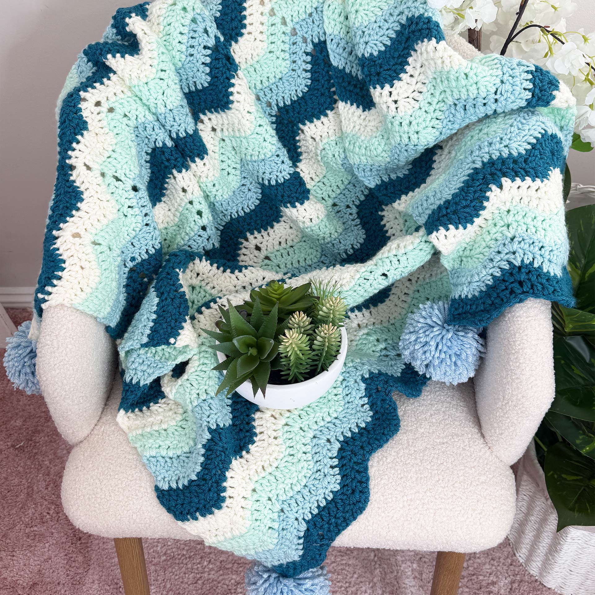 Make a warm, chunky ripple-stitch blanket for your couch with this easy pattern. This crochet blanket pattern uses double crochet stitches only, so it is easy to make. This pattern includes clear, step-by-step instructions and photos to guide you.