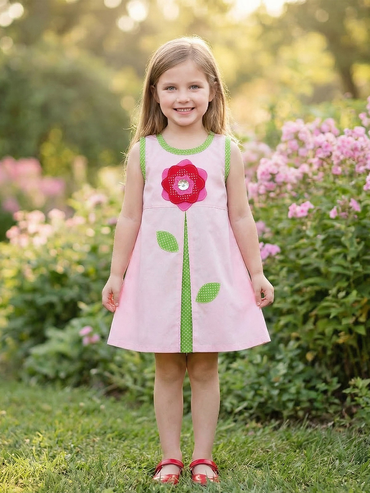 The Bella Dress is a special dress pattern for the little girl in your life. With an appliqué flower motif and a pleat that looks like the stem of the flower it is a cute addition to any little girl's wardrobe. BONUS TUTORIAL - You can use ready made bias binding for this dress which can be purchased easily or I also give you instructions for making your own without any special tools.