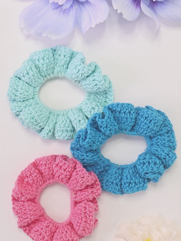 Make your own beautiful and functional crochet scrunchies with this easy-to-follow digital pattern! Perfect for beginners, this design uses just single crochet (SC) and double crochet (DC) stitches — simple, relaxing, and great for quick projects or gifts. Perfect for using up scrap yarn.
