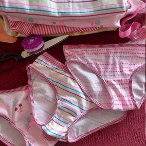 This girl underwear pattern will give great coverage and comfort. Finish the edges with fold-over elastic or lingerie elastic (picot).
