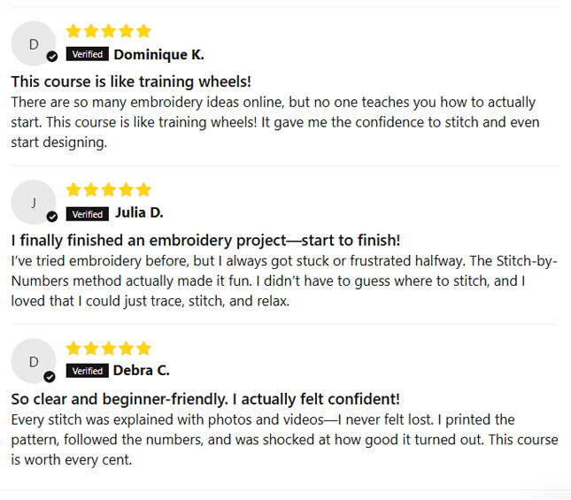 Same! That’s actually how this method was born. Most kits and tutorials throw you into the deep end with no structure. With Stitch-by-Numbers, I give you a path. You get templates that show you exactly where to stitch, videos to follow along, and no pressure to be perfect. It finally clicks.