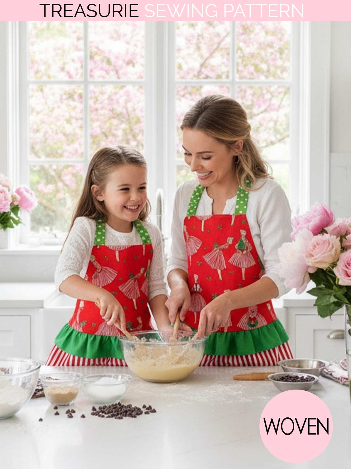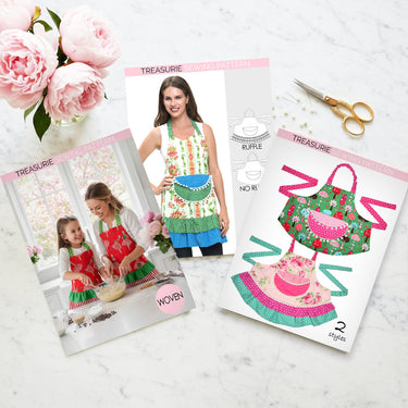 Create beautiful, functional aprons with this Apron Sewing Pattern Bundle from Treasurie. This PDF apron pattern includes two styles: a cute ruffled apron and a classic plain apron. It comes in adult and child sizes, making it perfect for anyone looking for a customizable, easy-to-sew kitchen apron for the whole family.
