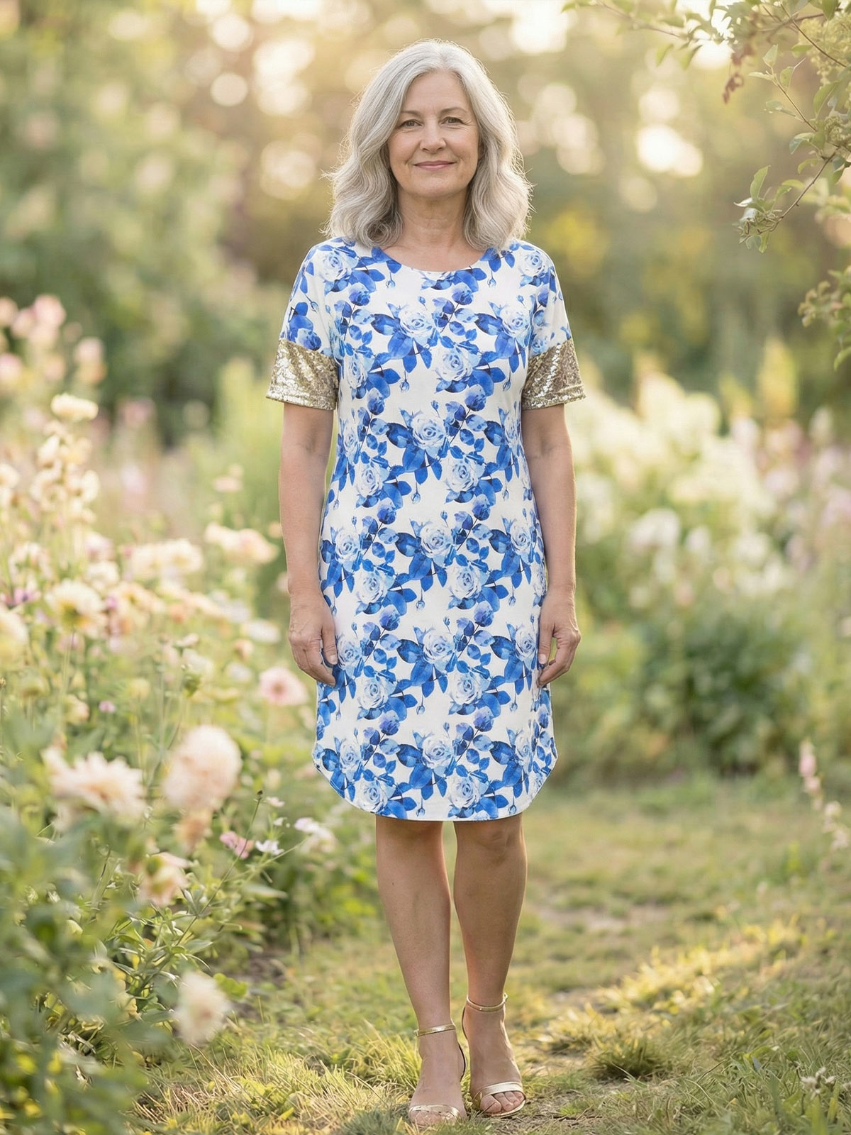 Make a t-shirt dress with this easy pattern. Options include simple silhouette or color-blocked and a curved or straight hem. It is designed to be made in a comfortable stretch fabric and is so easy to wear.